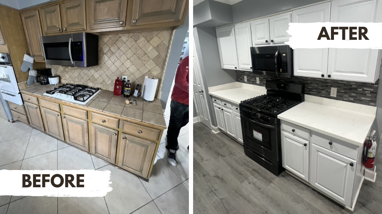 After a kitchen flood, we restored the flooring and upgraded the space for a client, addressing their emergency needs. The project included new appliances, painted cabinets, and a stylish backsplash. The client was delighted with the transformation and the improved functionality.